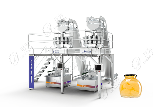 罐裝的時(shí)候,同一個(gè)罐子選用果肉大小一致、色澤、成熟度大致均勻的果肉。梨球、梨塊可選用多頭稱自動(dòng)固型物裝罐機(jī)裝罐、梨丁可選用丁料裝罐機(jī)裝罐。