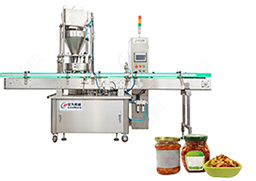 專為各類固體原料設(shè)計(jì),能夠自動(dòng)完成稱重與灌裝任務(wù),適用于玻璃瓶、馬口鐵罐等多種容器。其自動(dòng)化流程涵蓋了固體原料的計(jì)量、送料、裝罐以及成品輸送,確保了生產(chǎn)線的全面自動(dòng)化。機(jī)身構(gòu)造選用SUS304不銹鋼部件,不僅外觀美觀衛(wèi)生,制造工藝也極為精良,使用方便且運(yùn)行穩(wěn)定。