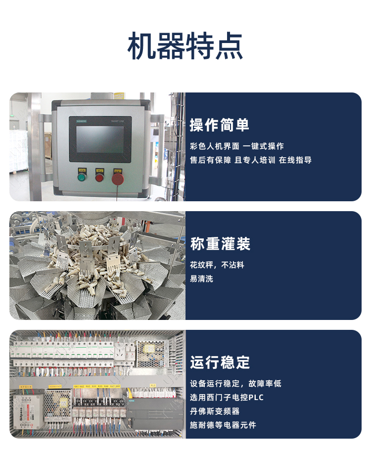1、設(shè)備能自主完成從固體原料計(jì)量到成品輸送的全部包裝流程,并具備自動(dòng)計(jì)數(shù)功能,簡(jiǎn)化了包裝操作。2、以PLC、伺服系統(tǒng)、氣動(dòng)控制系統(tǒng)及顯示觸摸屏為核心驅(qū)動(dòng)控制,大幅提升了設(shè)備的控制精度、可靠性和智能化水平。
